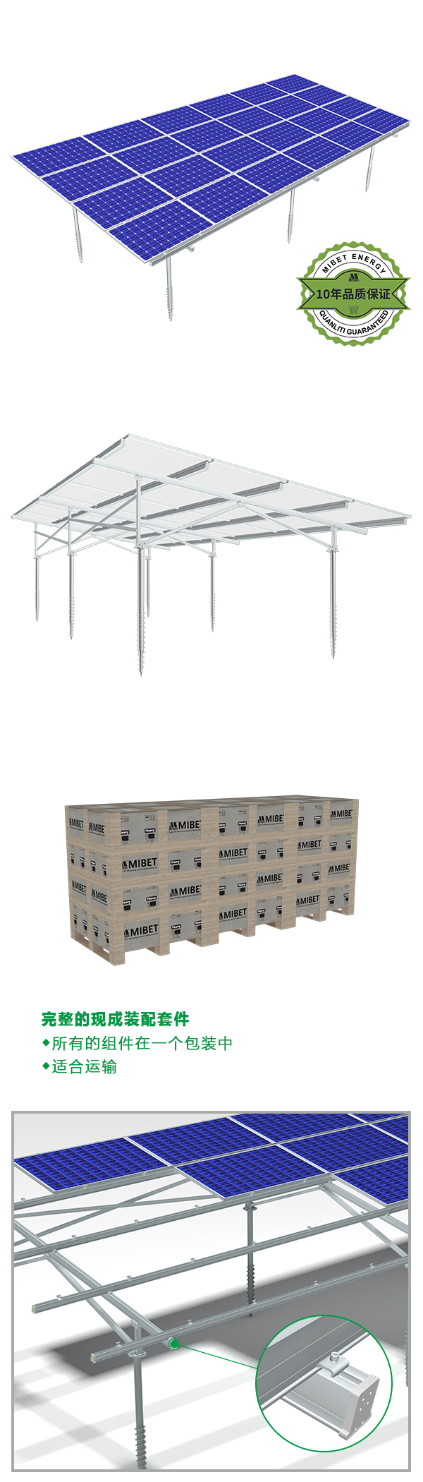 MRac 地面光伏支架系統(tǒng)TCGT4 該產品適用于抗風雪能力要求更高的安裝區(qū)域,具有高度預安裝特性,支架系統(tǒng)可前后、左右及上下方向上對進行調節(jié),適用于中大型光伏電站的安裝,專業(yè)的結構設計在確保系統(tǒng)強度的前提下,有效的提高了工程安裝的時效,大大降低了安裝成本。